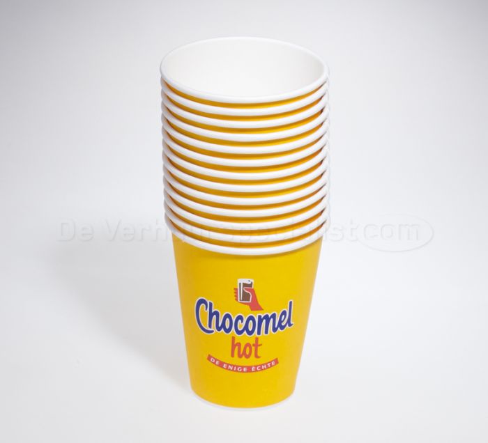 Kartonnen Chocomel Hot bekers. Verpakt per 50 stuks.