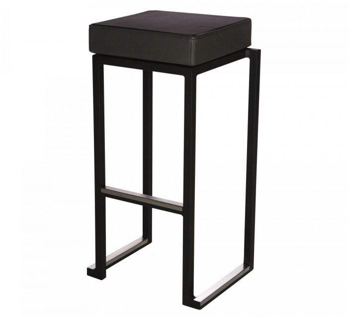 Vierkante barkruk met zwart frame en zwart (kunst)lederen zitje.