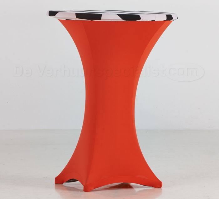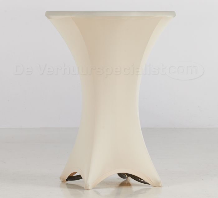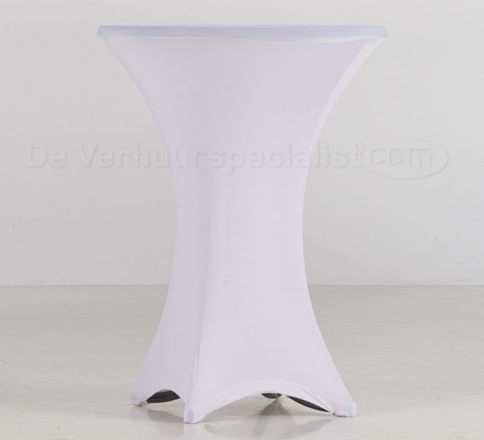 Deze statafel wordt door ons gebruikt wanneer onze klanten kiezen voor het gebruik van strech statafelrokken. Door dat deze statafel een middenpoot heeft komen deze rokken het best tot zijn recht en wordt de vorm van de rokken niet bellemmerd door het frame van de 'normale' statafels.