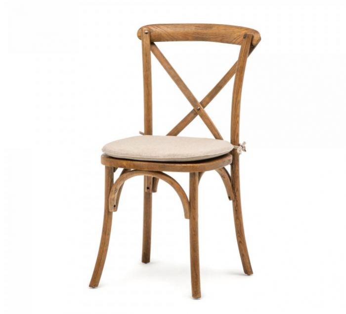 Wil je extra comfort op de crossback chairs? Bestel dan ook deze kussens erbij. Dat maakt het net wat plezieriger zitten. Een zand kleurig stoelkussen geschikt voor onze crossback chairs. Het kussen is met twee linten te bevestigen aan de stoel.